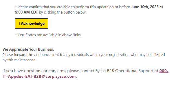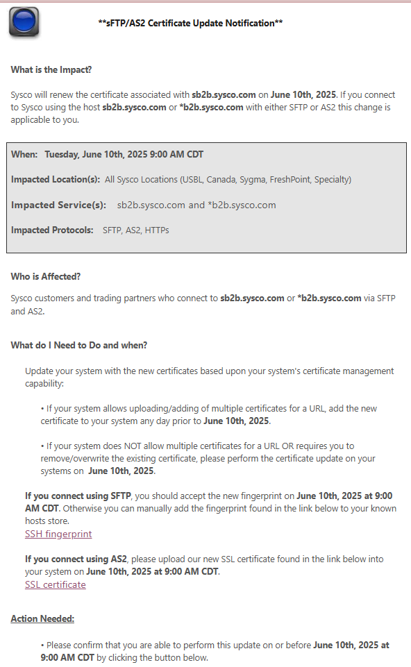 0 **sFTP/AS2 Certificate Update Notification** 6/10/2025 Debbie Barr May 29, 2025 14:18 None Follow Facebook Twitter LinkedIn